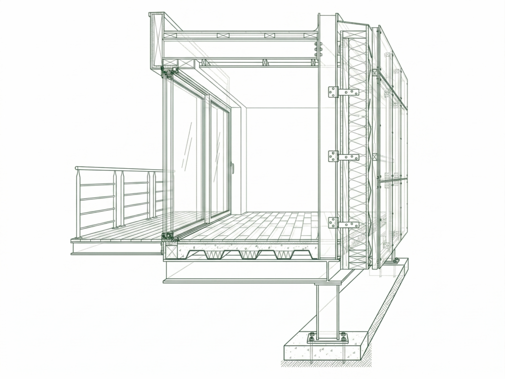 Le projet joue sur le contraste : légèreté de la structure, ancrage minéral, transparence des baies. Une nouvelle façade habitable, pensée comme un seuil entre dedans et dehors, où la vie quotidienne s’installe au plus près du paysage.